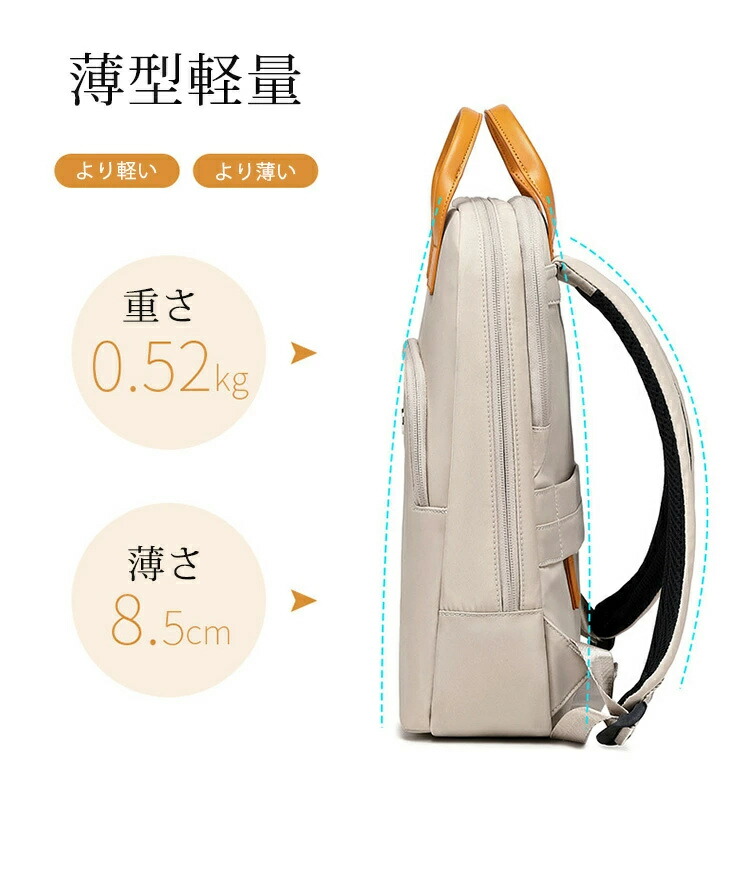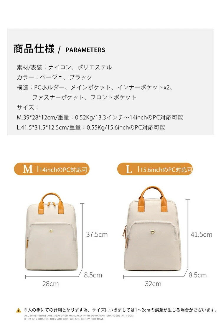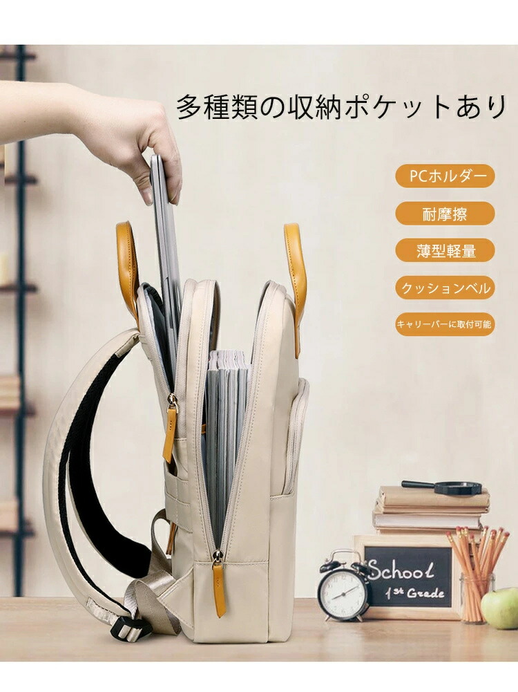 新作品 ビジネスリュック レディース ベージュ ブラック M L