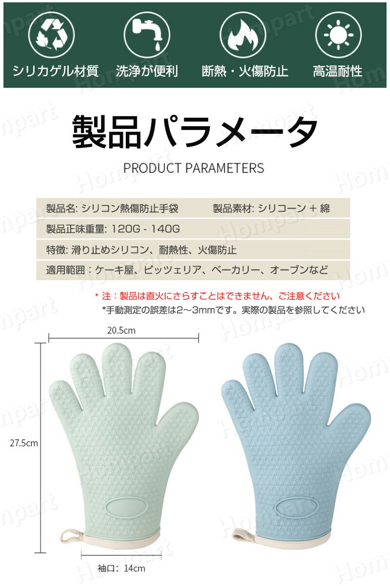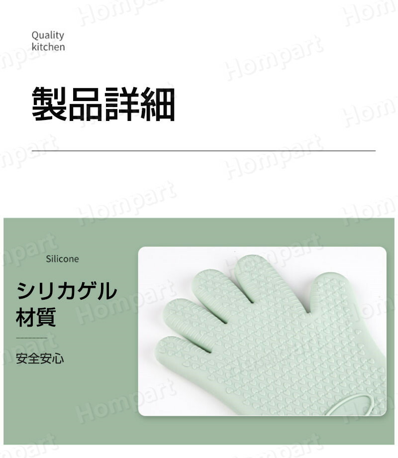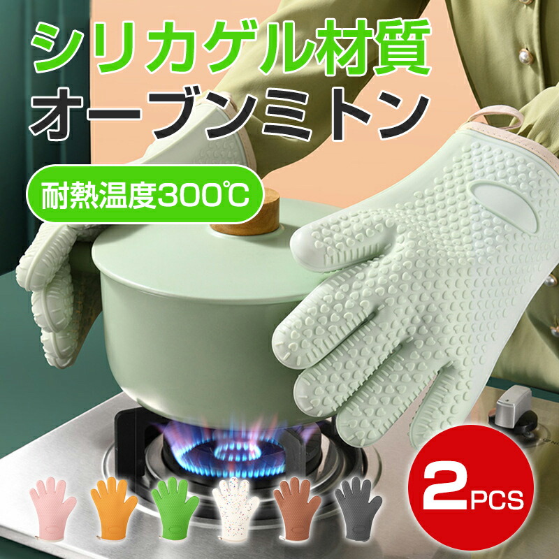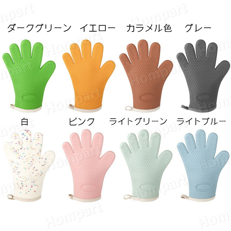 耐熱 5本指 両手用 キッチングローブ 配膳用品 キッチンファブリック ミトン 鍋つかみ 続々入荷中 ダークグリーン カラメル色 ピンク ライトグリーン 白 グレー 黄色 ライトブルー