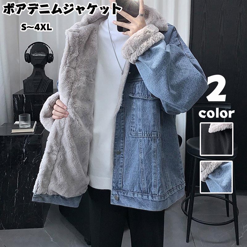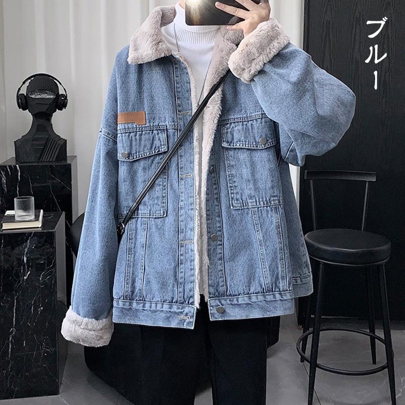 デニムジャケット 裏ボア メンズ ボア コート ジャケット 新作 ブルー ブラック S M L XL 2XL 3XL 4XL