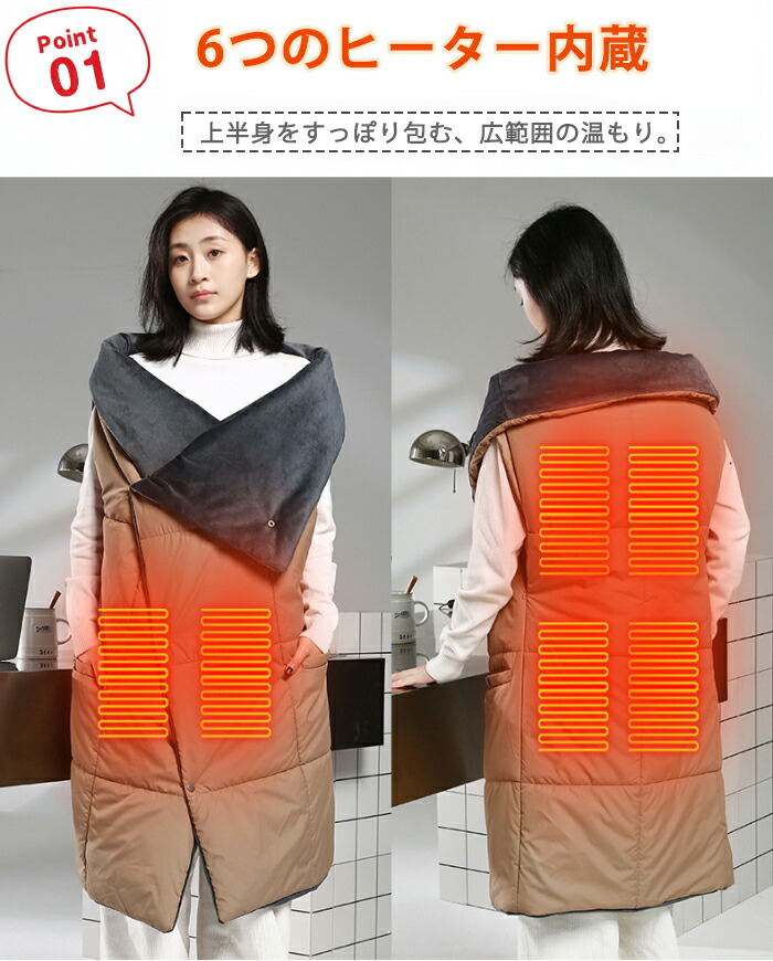 電気毛布 着る毛布 ポンチョタイプ U グレージュ グレー ネイビー