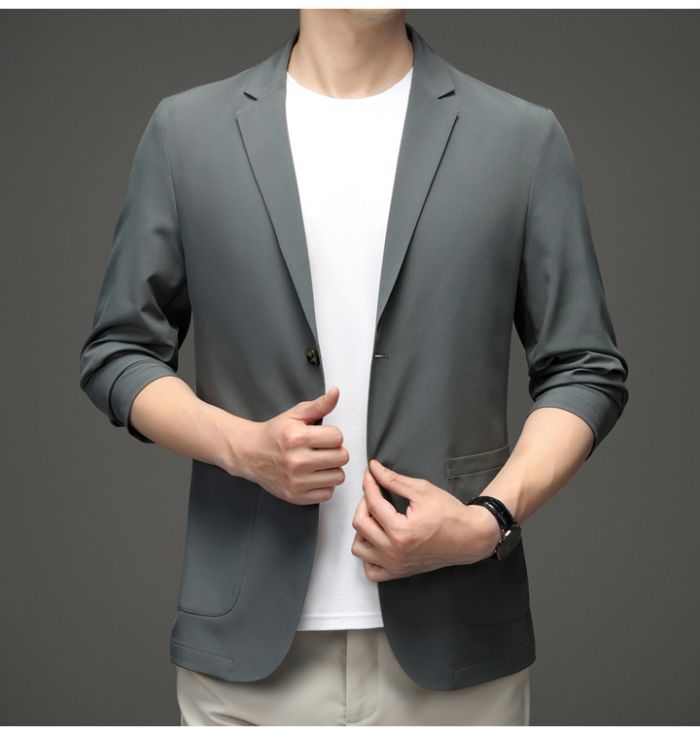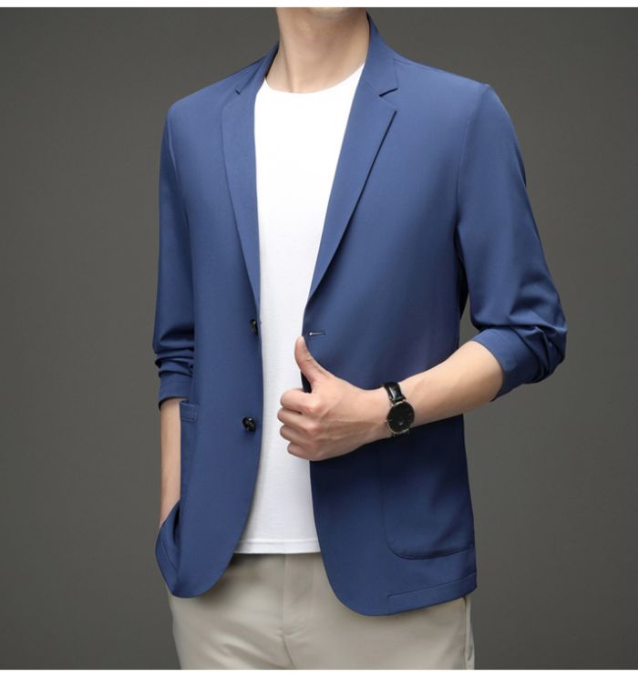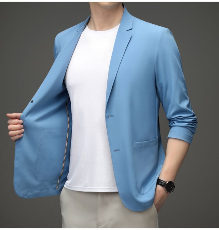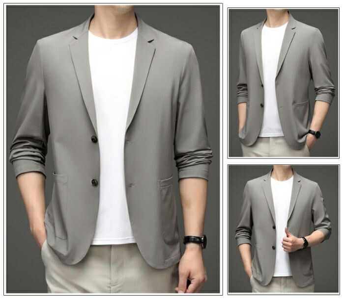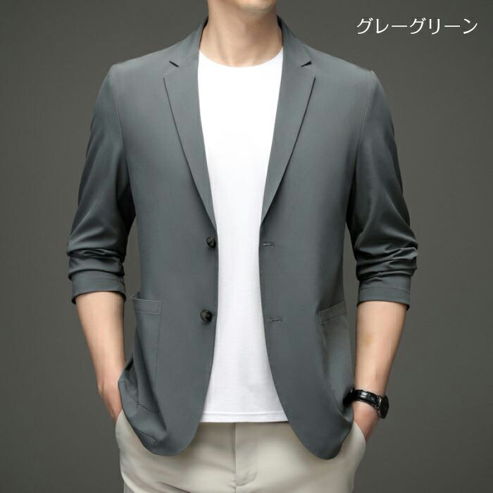 メンズ耐シワ性極薄アイスシルクスーツジ メンズファッション 続々入荷中 ライトグレー ダークブルー ブラック カーキ ライトブルー グレーグリーン 170/M 175/L 180/XL 185/2XL 190/3XL 195/4XL
