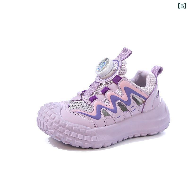 スニーカー キッズ 女の子 子供靴 スポーツシューズ ランニングシューズ 運動靴 軽量 柔らかい靴底 通学 春夏 ピンク パープル 普段使い