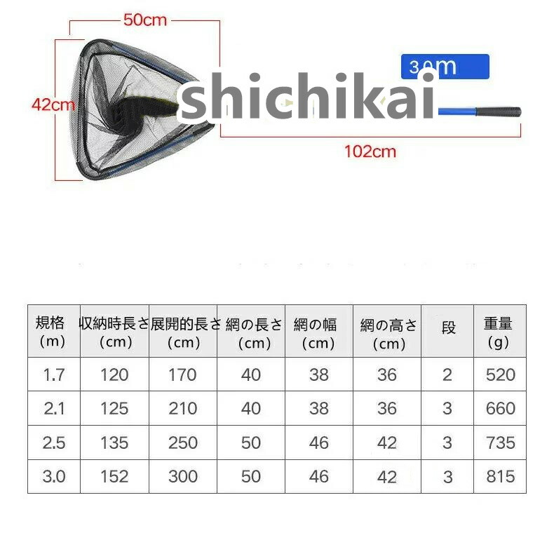 タモ網 ランディングネット 折りたたみ スポーツ アウトドア 新作 1.7m 2.1m 2.5m 3.0m
