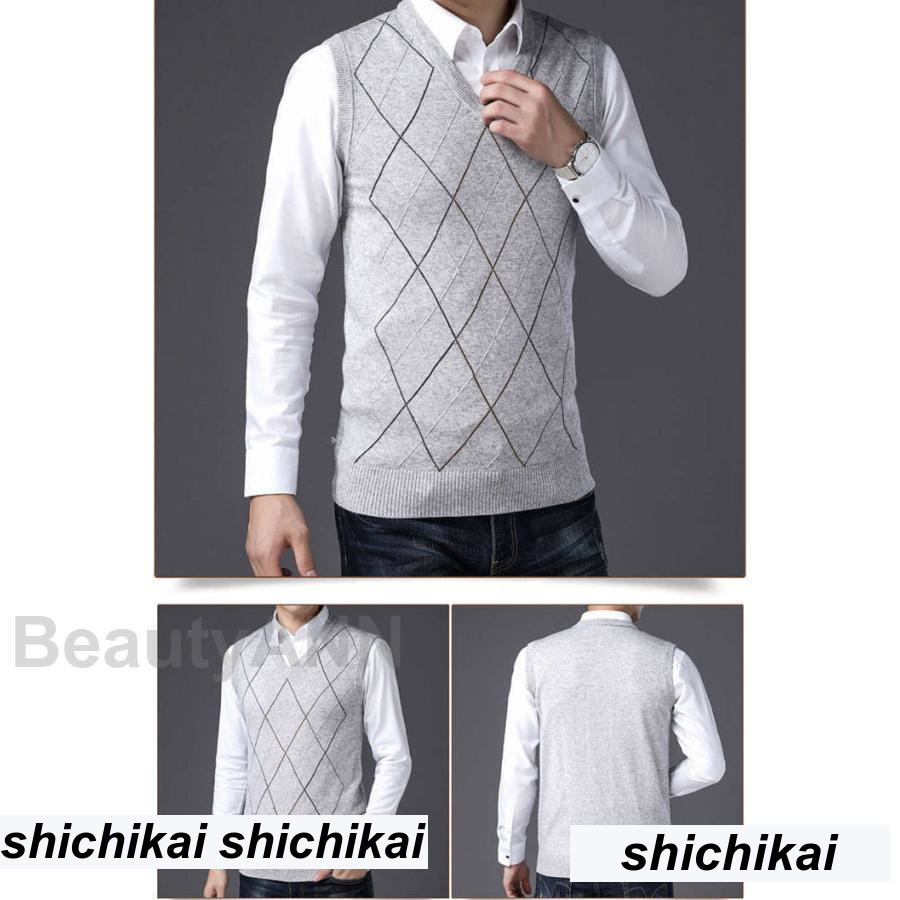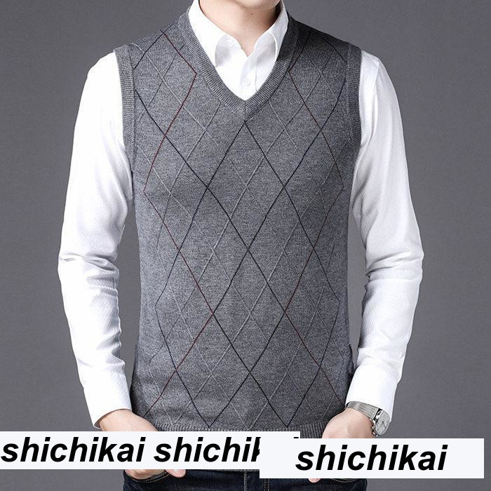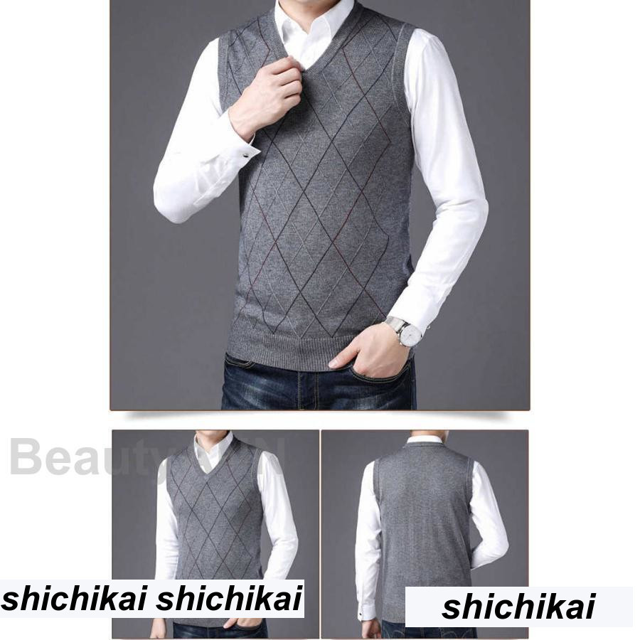 ニットベスト メンズ ベスト Vネック トップス ニット セーター 早い者勝ち ネイビー グレー ダークグレー レッド M L XL 2XL 3XL