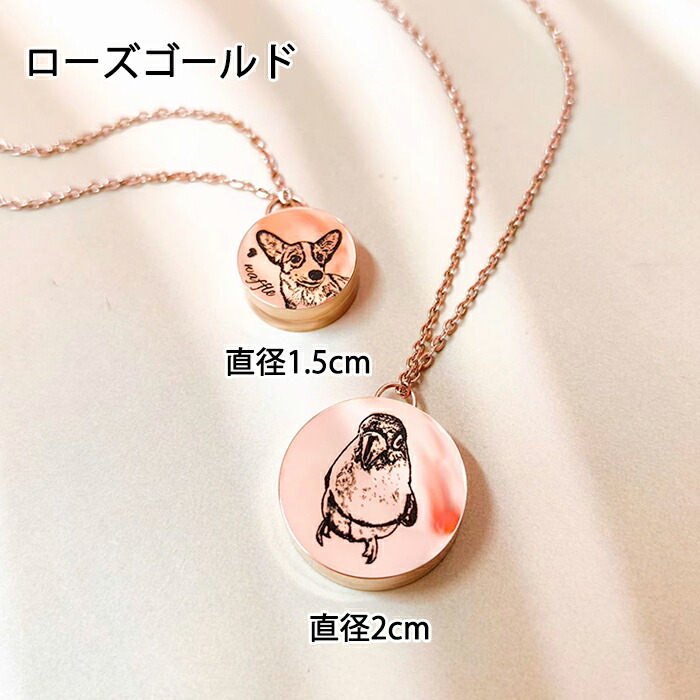ネクレス 名入れ ペットの刻印写真 分 レディースジュエリー アクセサリー ネックレス ペンダント 通販 ゴールド シルバー ローズゴールド 直径1.5cm 直径2.0cm