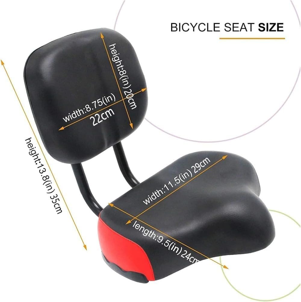 ユニバーサル背もたれサドル、背もたれ付きサドルバイクシート、エクストラワイドコンフォート自転車サドル、背もたれ付き自転車三輪サドルシート、ユニバーサル自転車アクセサリー