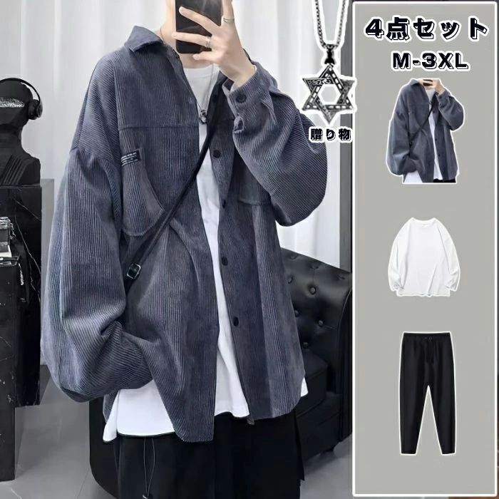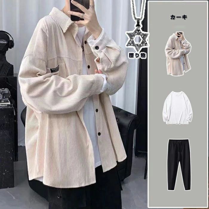 セットアップ ジャケット パンツ シャ メンズファッション 人気 グレー ブラック カーキ M L XL 2XL 3XL