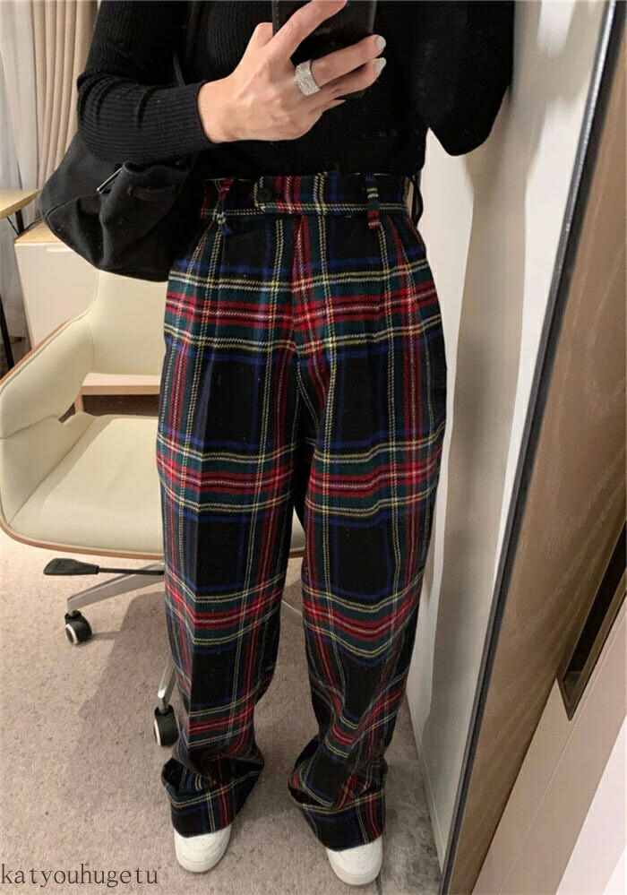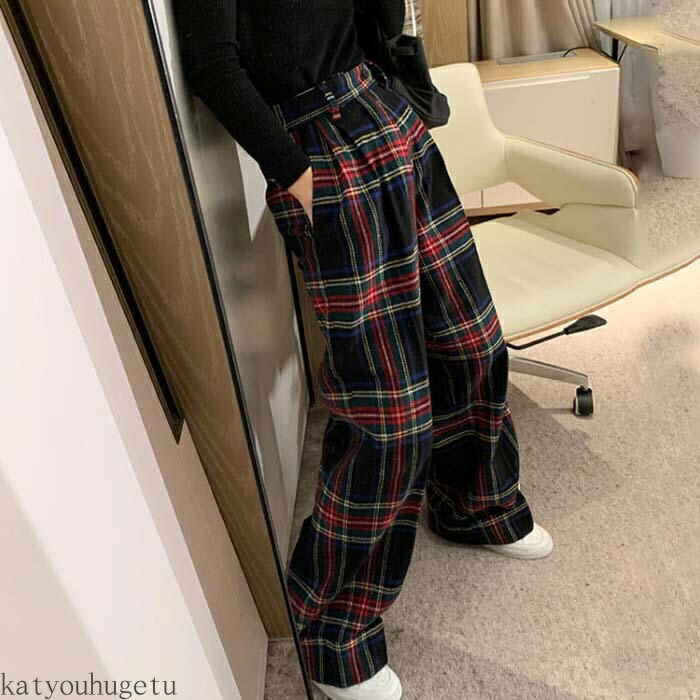 美脚パンツ ガウチョパンツ チェックパ レディースファッション 超目玉商品 M L XL 2XL