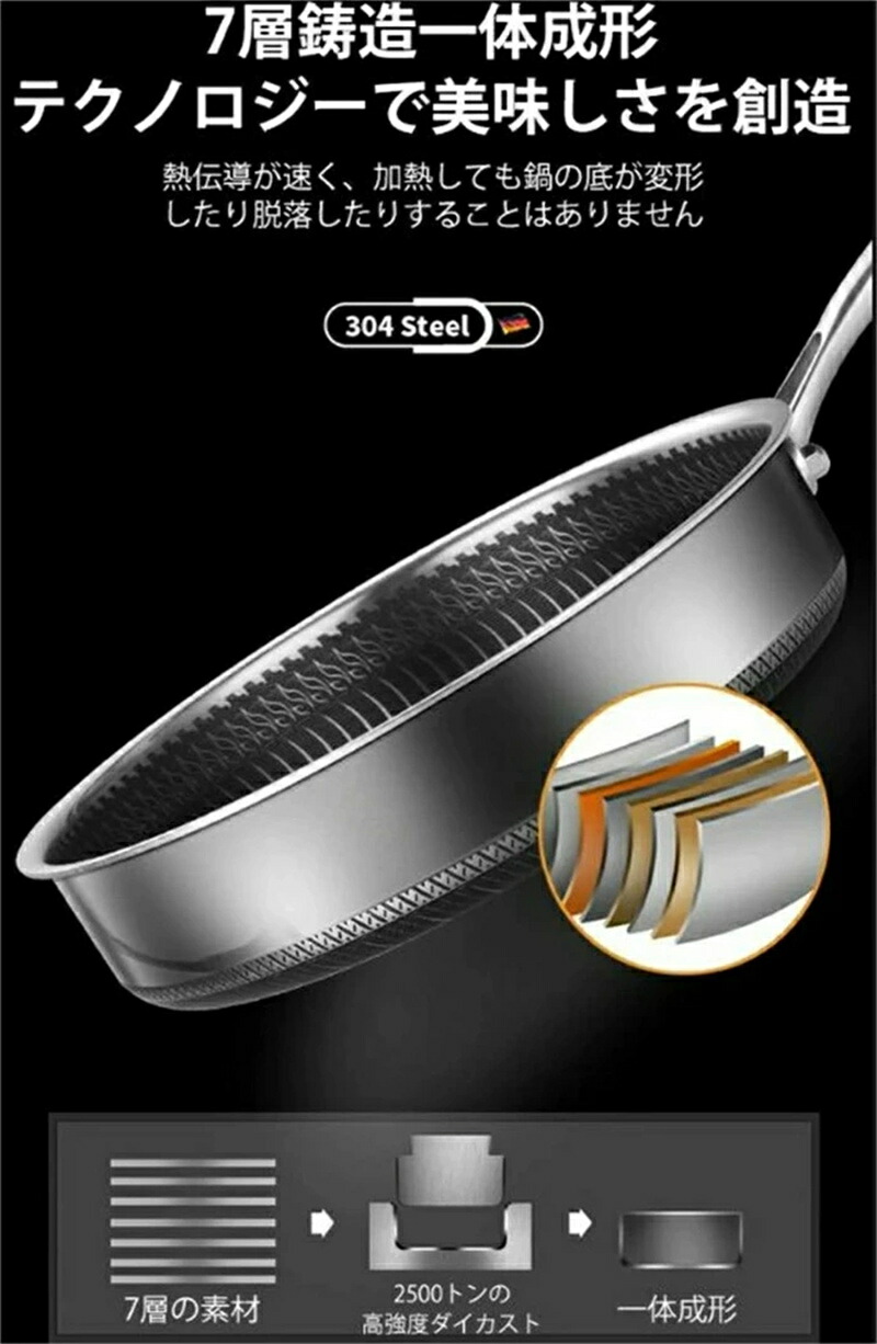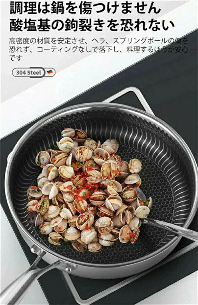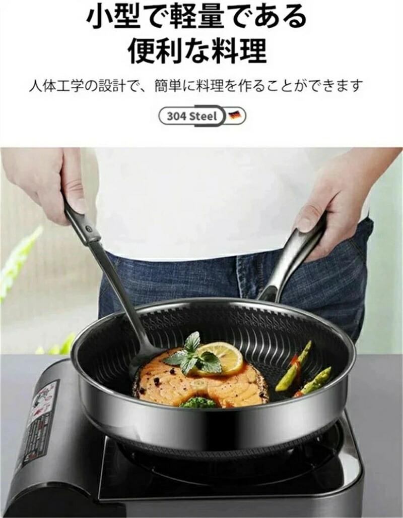 焦げ付き防止304ステンレス鋼フライパ