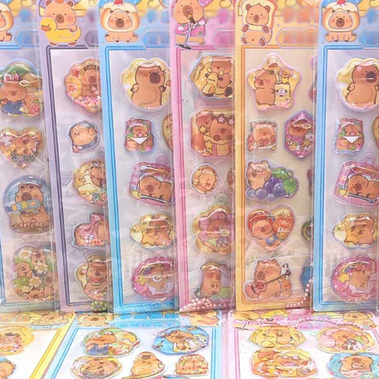 ウォーターシール キャラクター ぷっくりシール 可愛い 12枚入り 立体シール 小学生 ぷくぷくシール 3D 女の子 シール帳 ご褒美シール カピバラさん キラキラシール 手帳 ノ シール