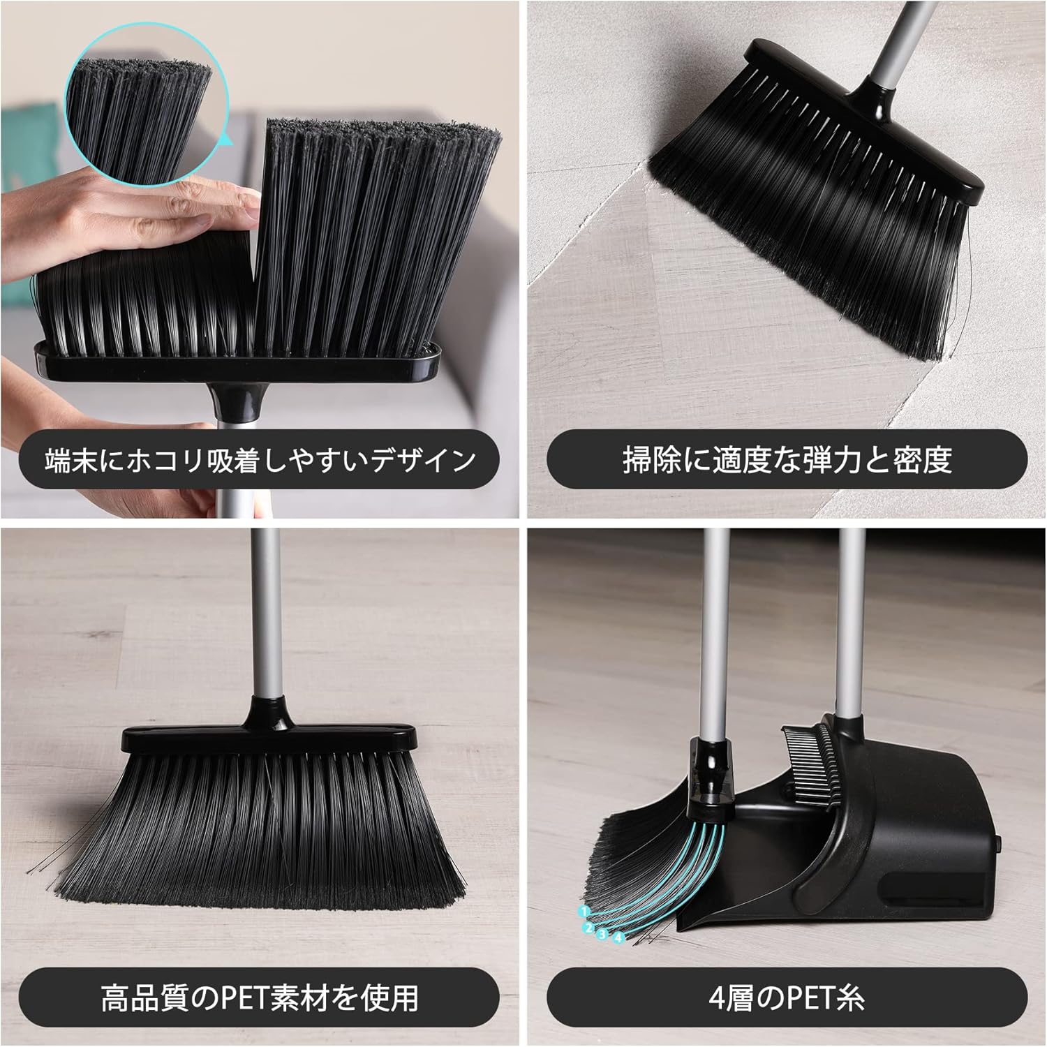 ほうき ちりとり 掃除セット 自立式 日用品雑貨 文房具 手芸 超目玉商品 One color ブラック Free size onesize