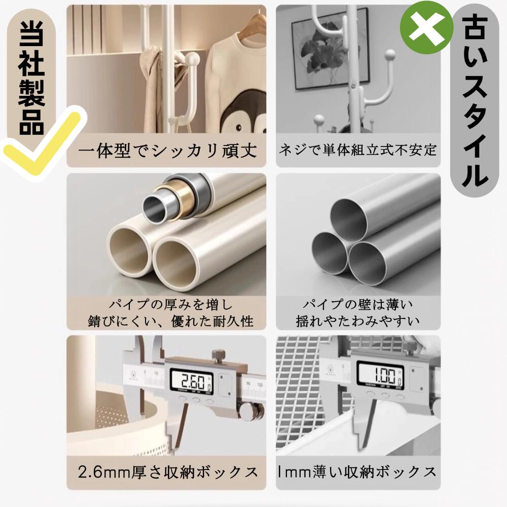 この洋服ラックには頑丈のハンガーが装備されており、収納スペースを提供し、散らかった服や限られた収納スペースの心配を解消します。ストレートロッドハンガーは衣類を掛けるのに使用され、サボテンフックはバッグや帽子を掛けるために設計されており、収納ボックスは下着や靴下などを収納するのに使用できます。