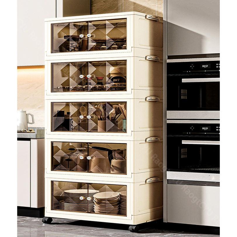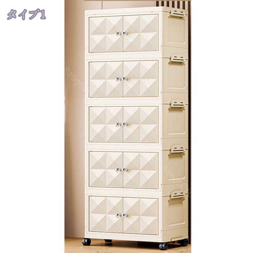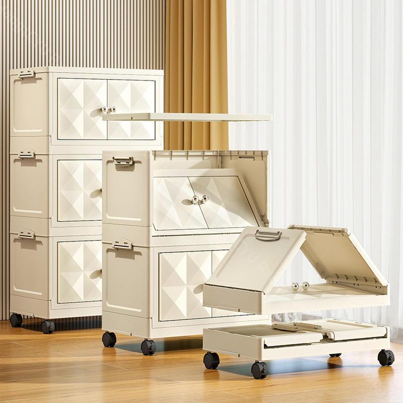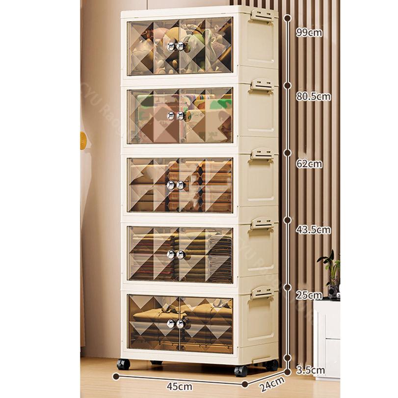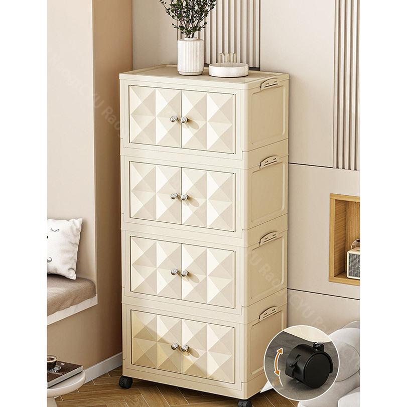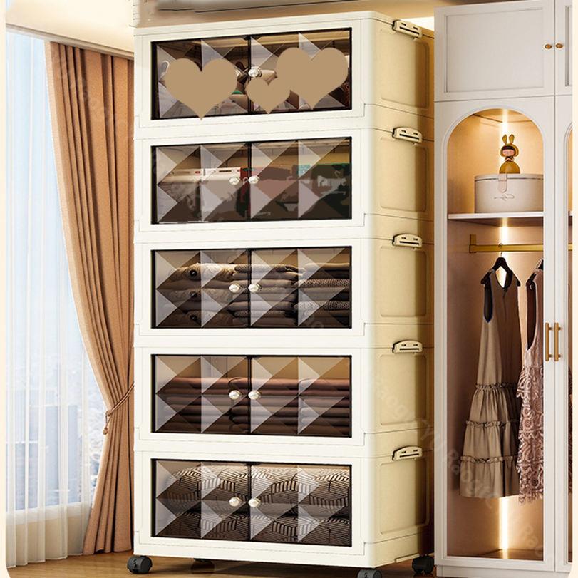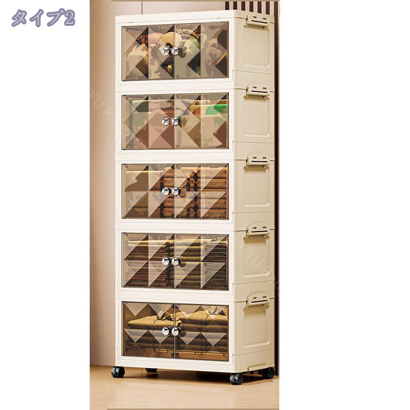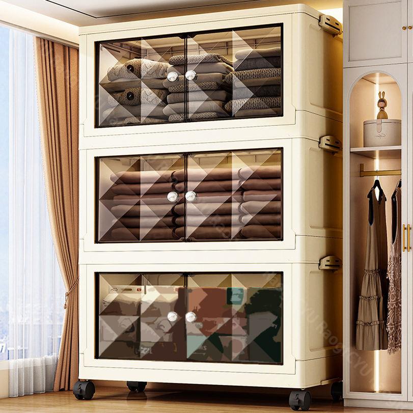 キャスター付き収納キャビネット 扉付き折り畳み収納ボックス 折り畳み式 コンテナ ボックス 省スペース 組立簡単 中身が見える 折りたたみ衣装ケース 衣装 折り畳み収納ボックス クローゼ 大型ボックス