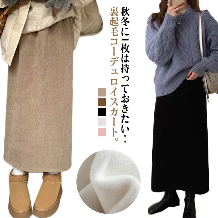 コーデュロイスカート ロング丈 裏起毛 レディースファッション 特集 ブラック(裏起毛) アイボリー(裏起毛) ピンク(裏起毛) コーヒー(裏起毛) ベージュ(裏起毛)