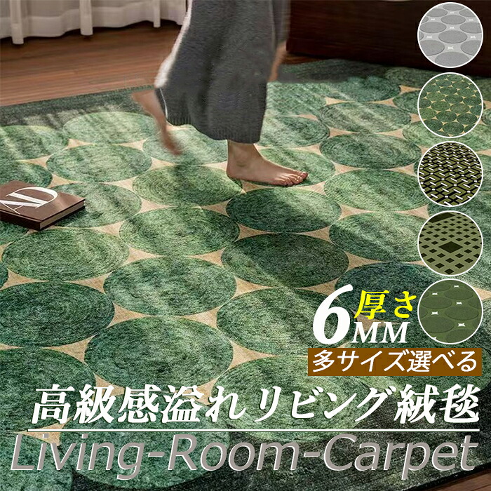 高級感溢れ リビング絨毯 厚手 6mm 円格-グレー 円格-グリーン 年輪-グリーン マス目-グリーン WX-グリーン 120×160cm 140×200cm 160×230cm 200×300cm