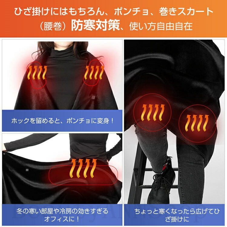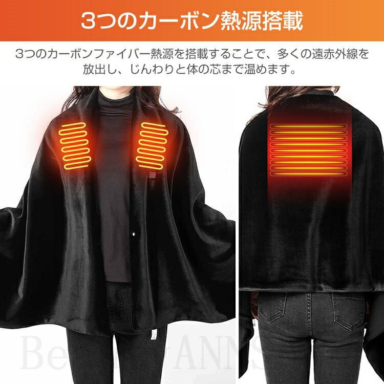 電気毛布 電気ブランケット 電気肩掛け 加熱ショール 電熱ショール 電熱ストール マフラー 大判 冬 ヒーター付きショール ケープ USB式給電 寒さ対策 大きいサイズ 三段階温度調整 丸洗い可 発熱