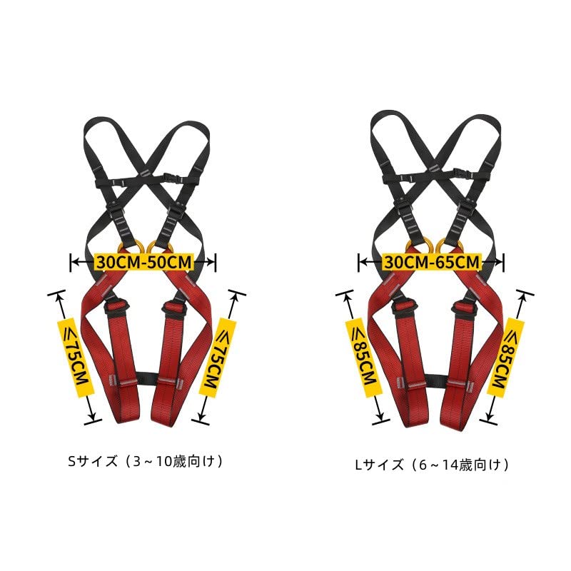 子供用安全ハーネス 全身落下防止 ロッククライミングハーネス シットハーネス 安全ハーネス ロッククライミング 登山安全ベルト 半身ハーネス高強度 調節可能 レスキュー 岩登り つり環つき安全ベルト