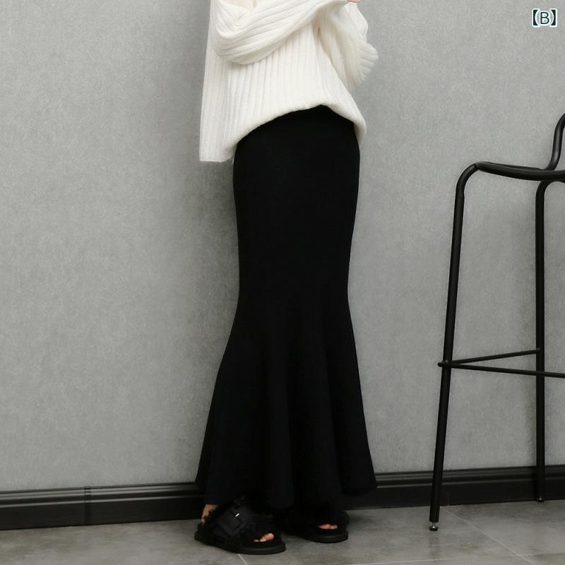 スカート レディース 米白色 ニット ボトムス スカート 特集 A:アイボリー90CM B:黒90CM S M L XL