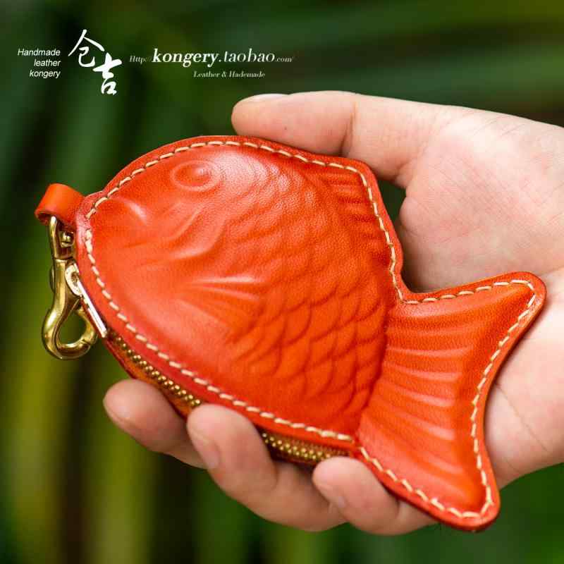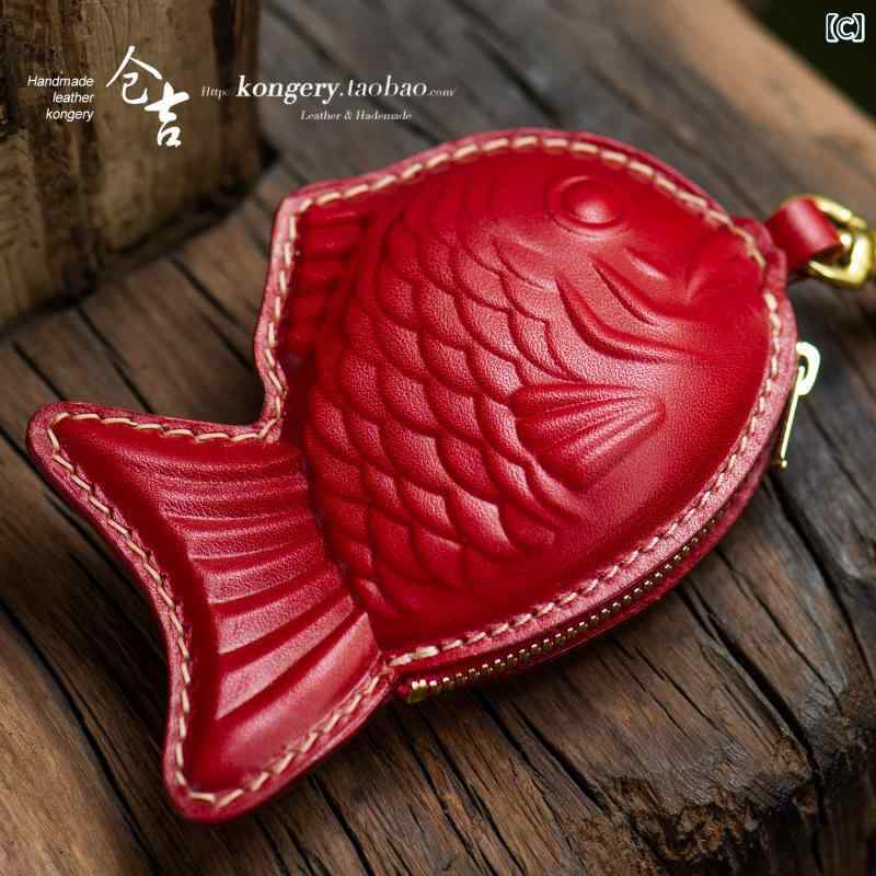 たいやき キー ケース 最上級 牛革 バッグ 小物 ブランド雑貨 早い者勝ち A:レトロブラウン B:ジェイドグリーン C:ザクロレッド D:エレガントなブラック E:アイボリーイエロー(牛革色)