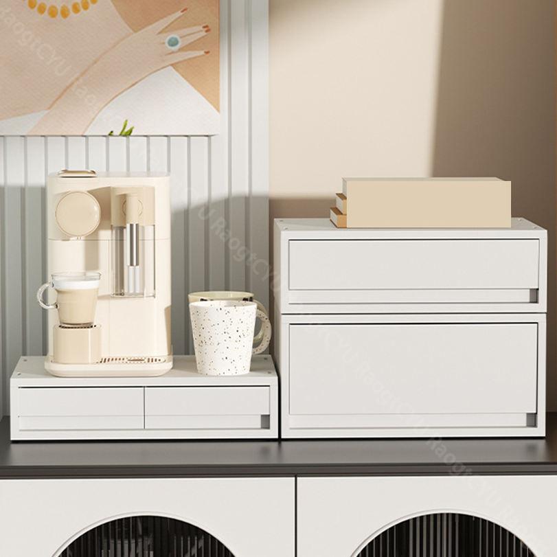 上段には電気ケトル、電気ポット、コーヒーメーカーなどの小型家電を配置可能。