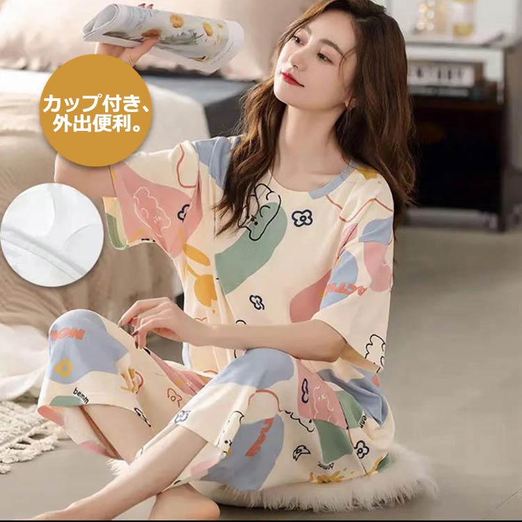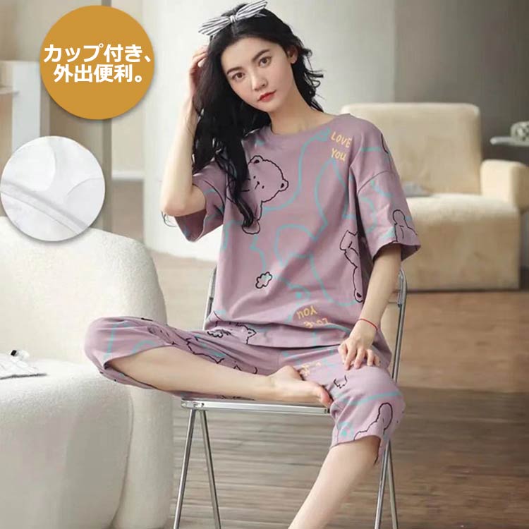 夏 パジャマ 半袖 レディース 涼しい レディース ナイトウェア ルームウェア パジャマ 続々登場 2点セットベージュ 2点セットパープル M L XL 2XL
