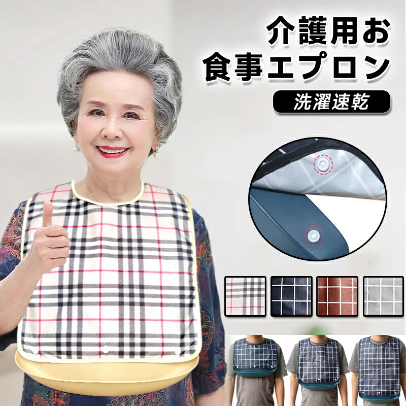 介助エプロン シニア 老人 大人 向け 短 中 長 ベージュ ブルー カーキ グレー