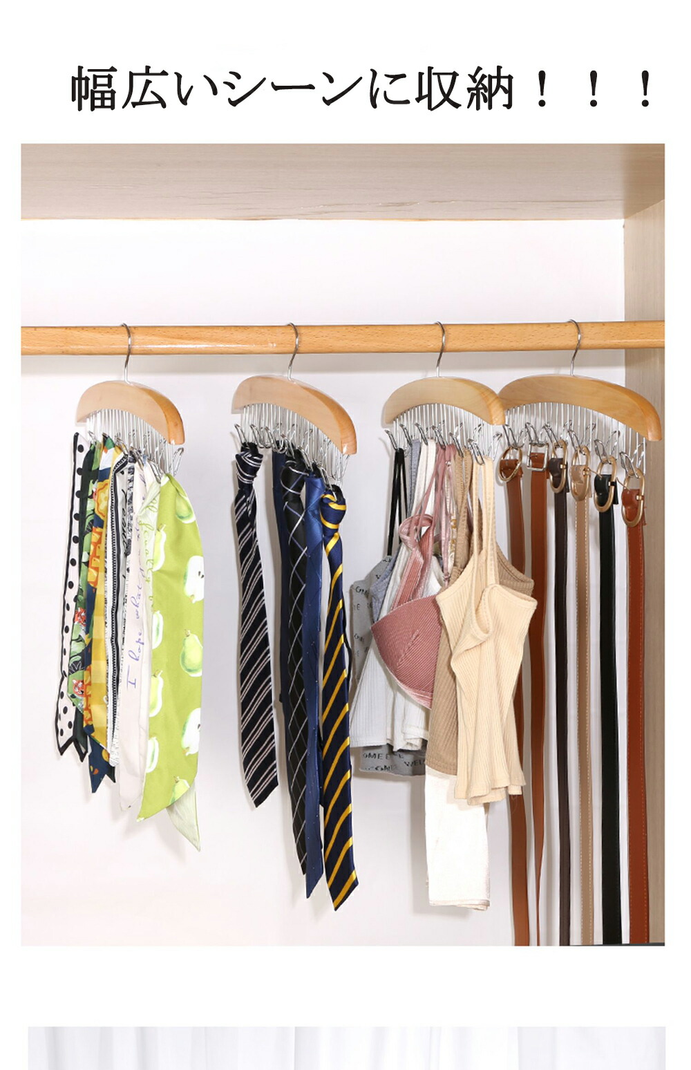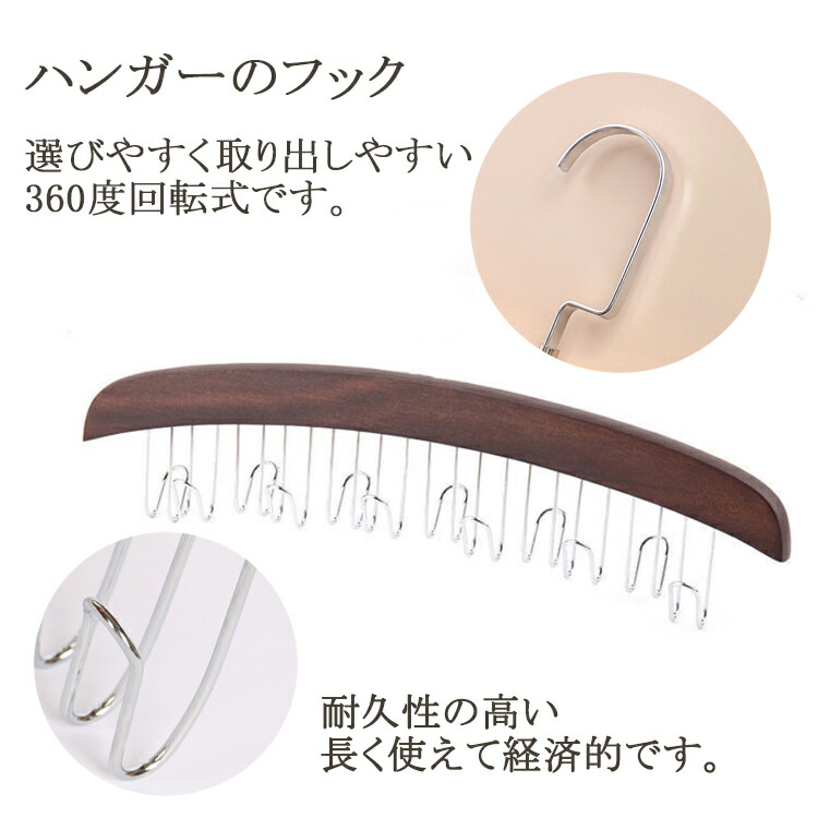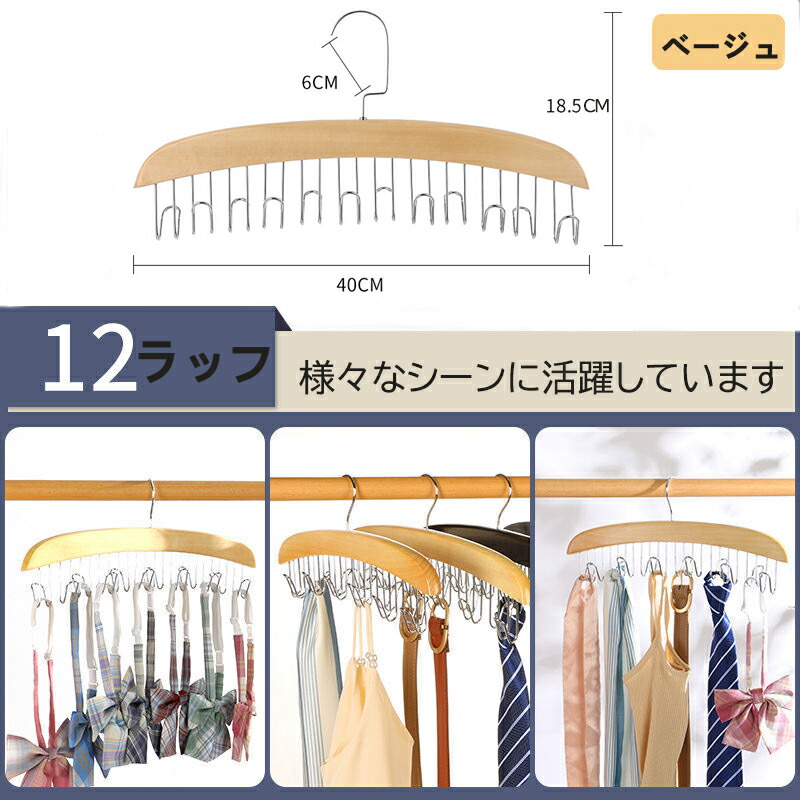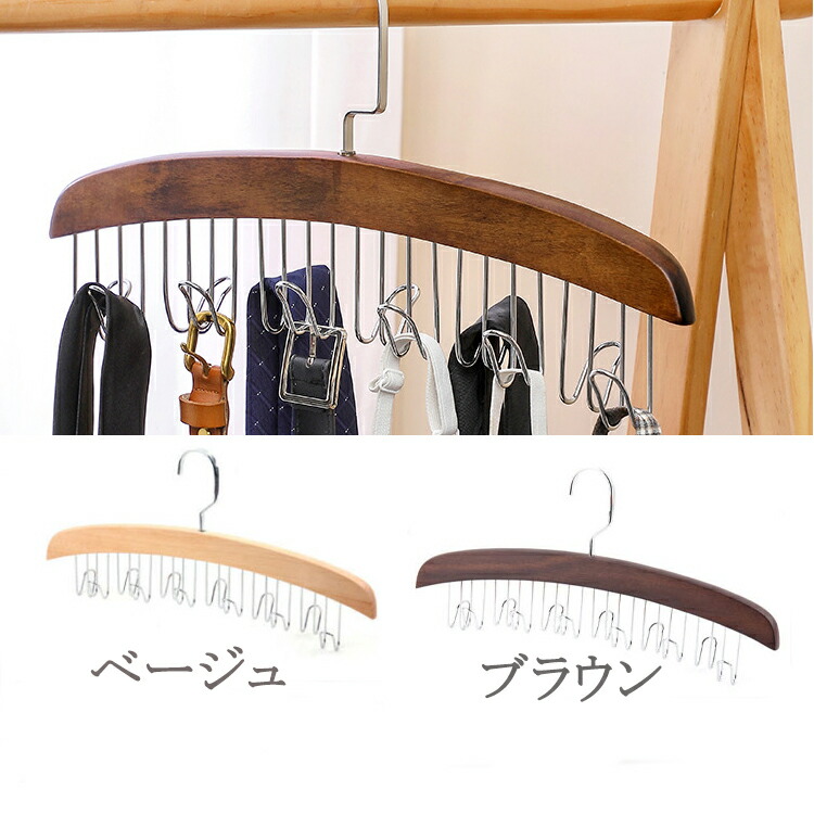 木製ハンガー 多機能ハンガー ネクタイ ブラウン ベージュ 1セット 2セット