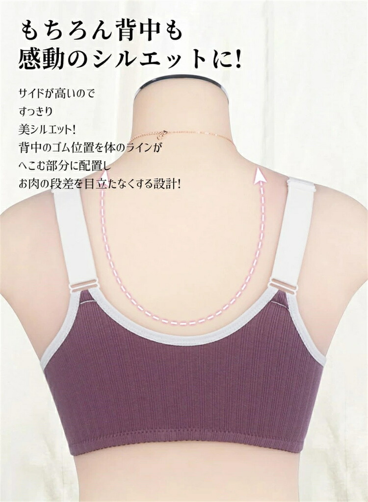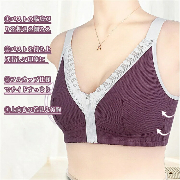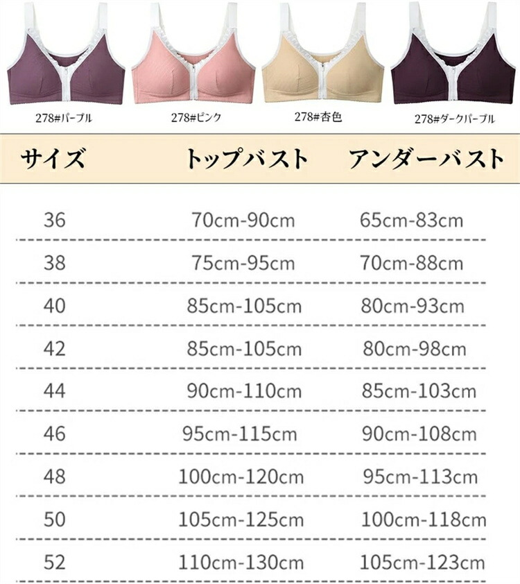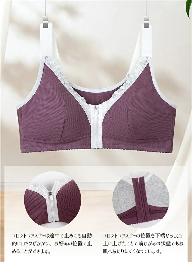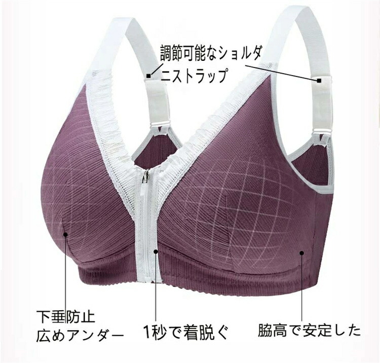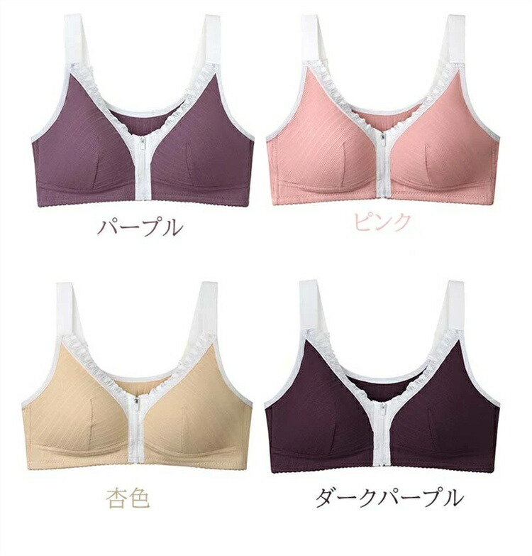 レディース 前開きノンワイヤー ブラジ インナー 下着 ナイトウエア 通販 ダークパープル パープル ピンク 杏色 36 38 40 42 44 46 48 50 52