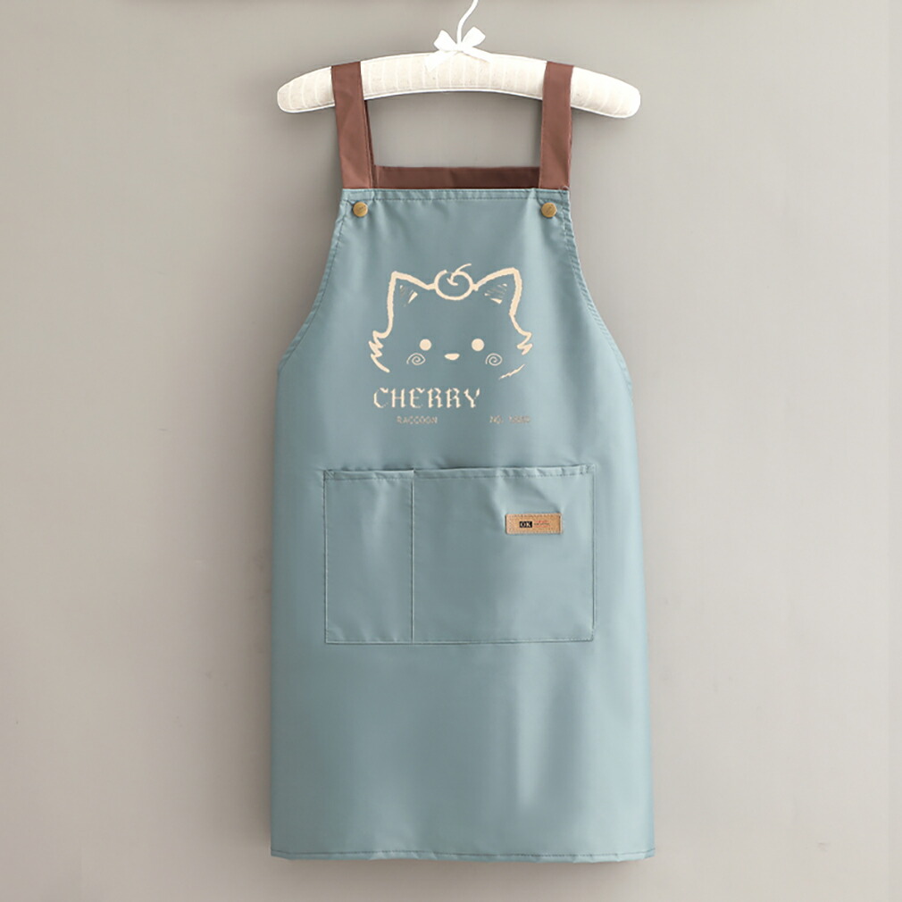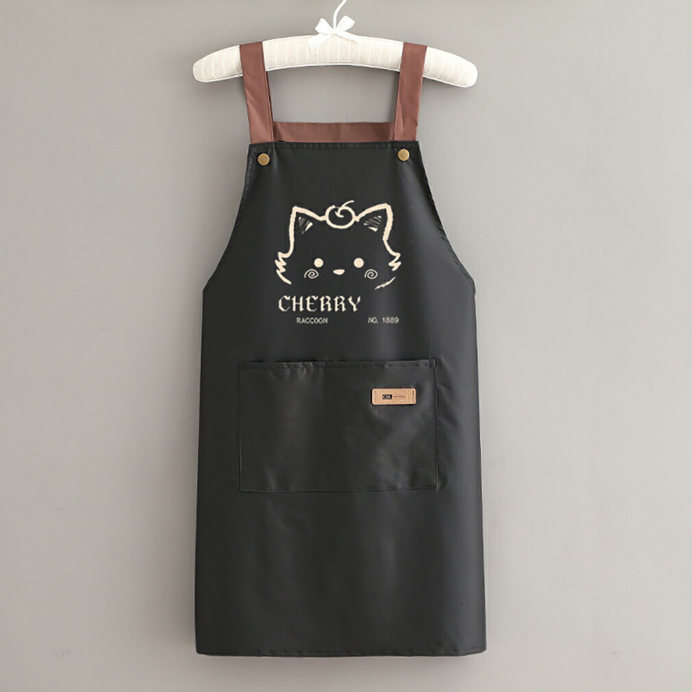 防水防油エプロン 可愛い猫柄実用的キッ キッチン用品 食器 調理器具 続々登場 ブラック ライトグレー ピンク ブルー