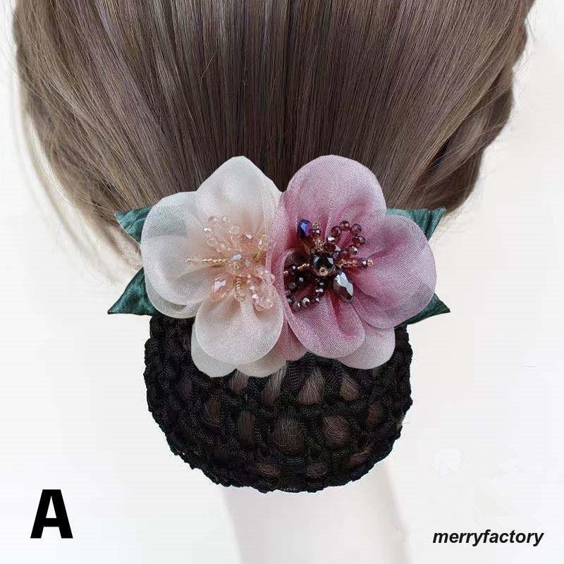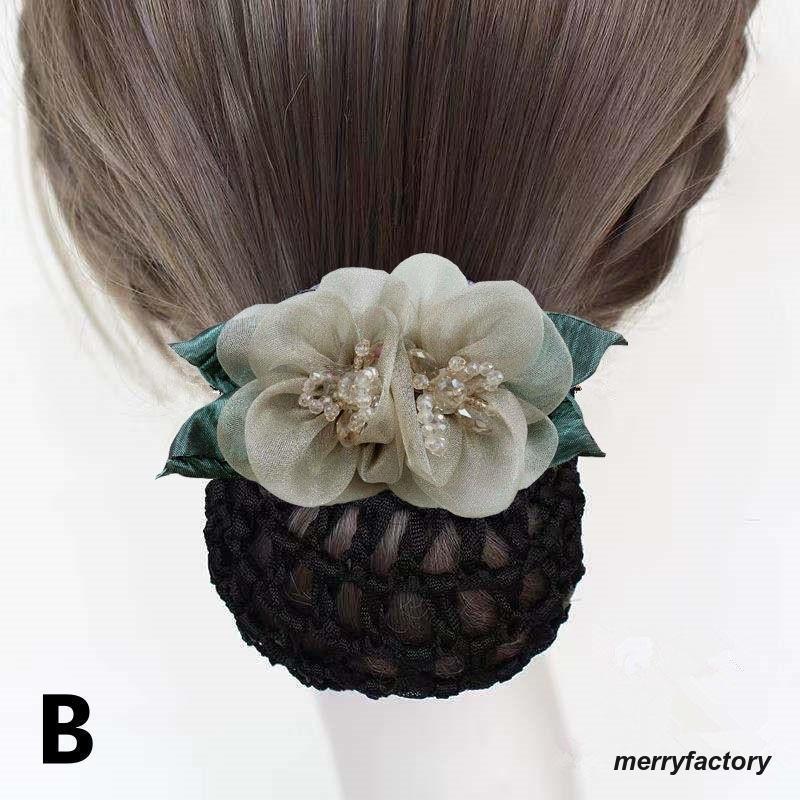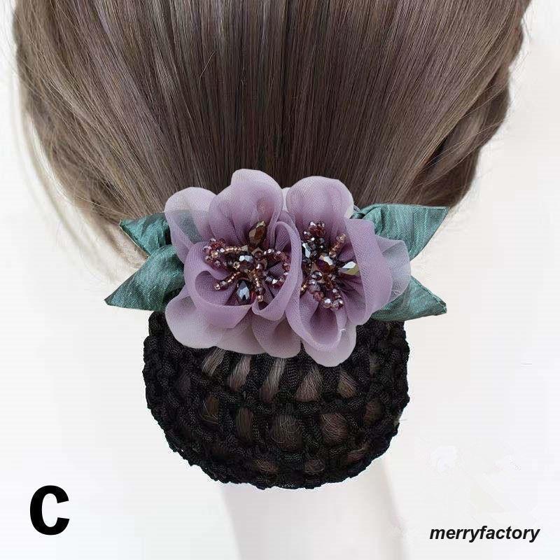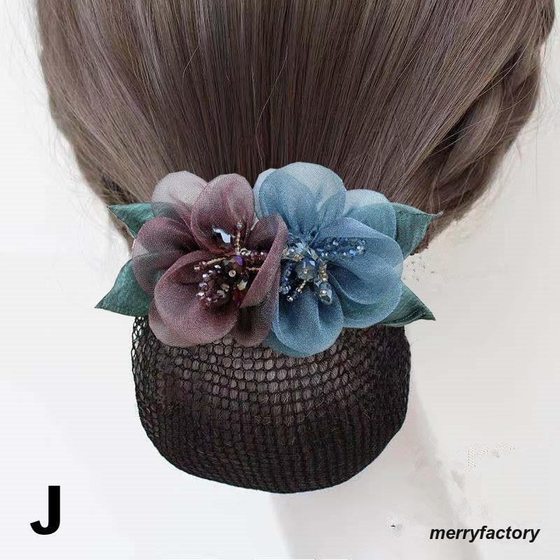 バレッタ ヘアネット付き お団子ヘア ジュエリー アクセサリー 豊富な品揃え A B C D E F G H I J