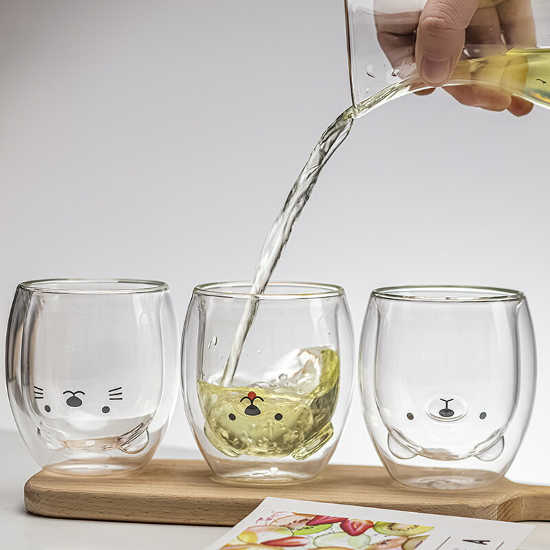 "耐熱グラス 動物 結露しにくい 2層 コーヒー お茶用品 マグカップ ティーカップ コーヒーカップ 豊富 ダク ネコ いぬ クマ1 クマ2 クマB クマG