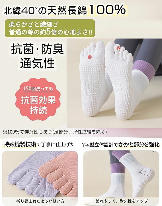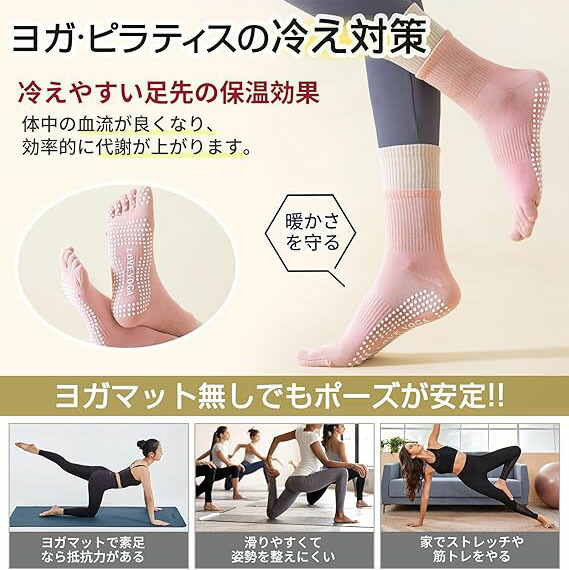 【優れたスポーツ性能】ヨガだけでなく、ピラティス、ホットヨガ、バレ、ジムトレーニング、ダンスなどのすべての裸足での活動に安定感を感じます。冷房や寒い季節の冷え対策にも効果的。冷え防止、足裏保護、怪我予防にも役立ちます。季節問わず春、夏、秋、冬快適にご使用いただけます。