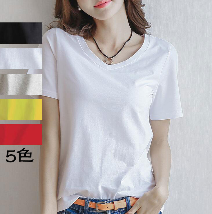レディースtシャツ VネックTシャツ レディースファッション 通販 S M L XL XXL 3XL ブラック ホワイト グレー レッド イエロー
