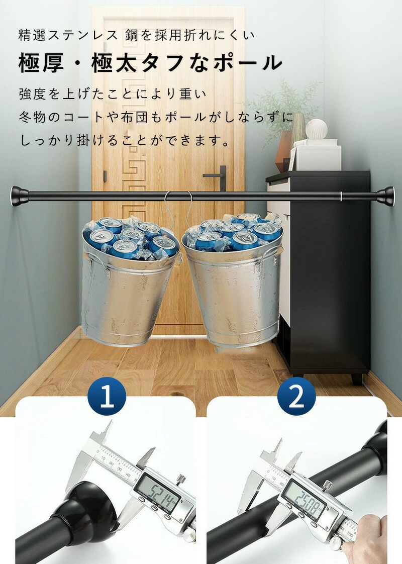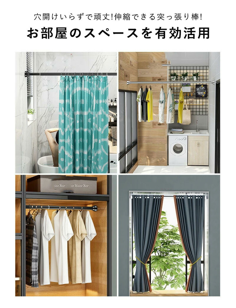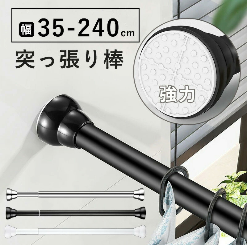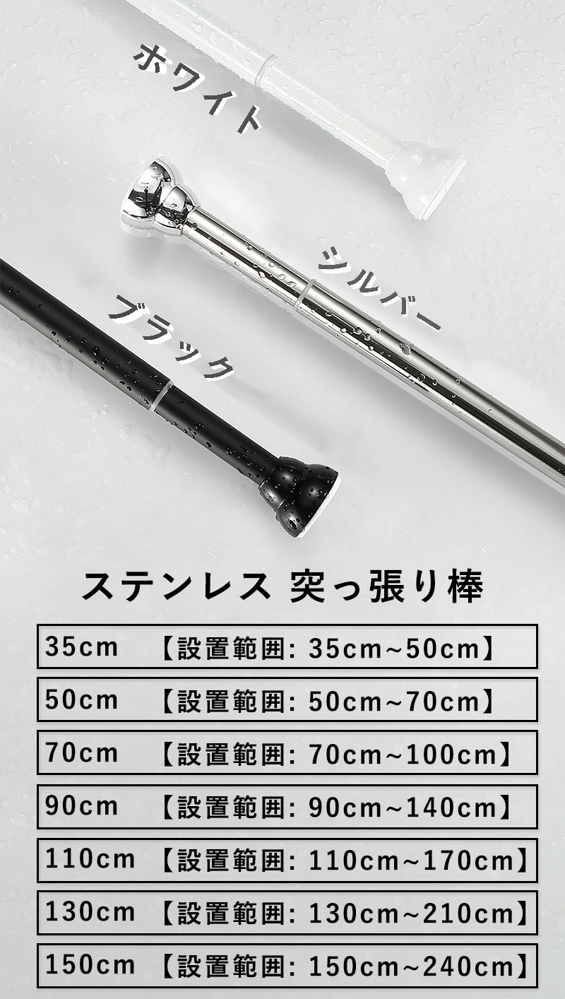 突っ張り棒 つっぱり棒 強力 おしゃれ シルバー ホワイト ブラック 35cm【設置範囲: 35cm~50cm】 50cm【設置範囲: 50cm~70cm】 70cm【設置範囲: 70cm~100cm】 90cm【設置範囲: 90cm~140cm】 110cm【設置範囲: 110cm~170cm】 130cm【設置範囲: 130cm~210cm】 150cm【設置範囲: 150cm~240cm】