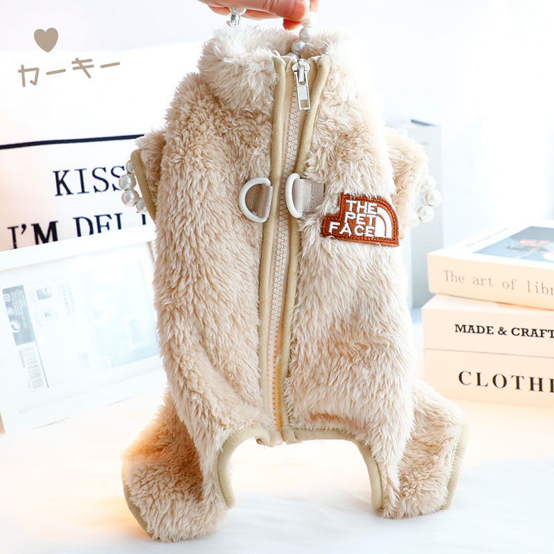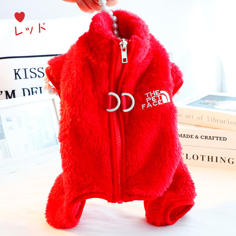 犬服 冬服 つなぎ ボア ふわふわ 背 犬用品 ドッグウェア つなぎ カバーオール 人気 レッド グレー カーキー S M L XL XXL