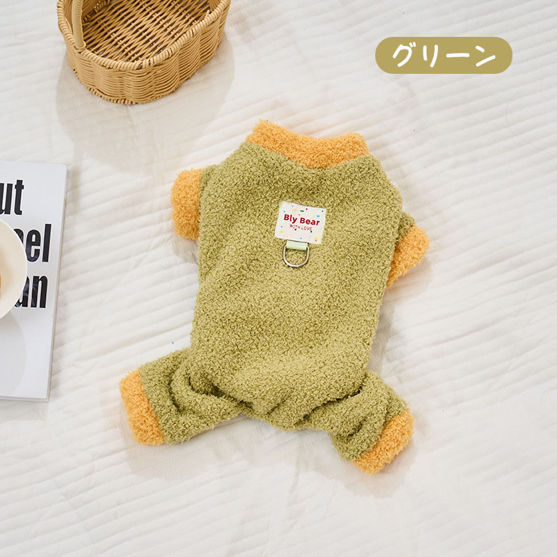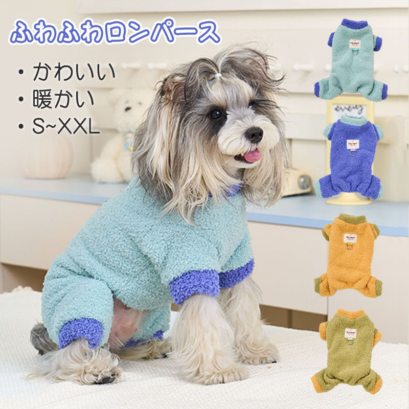 犬服 つなぎ 冬 ロンパース ふわふわ ペット ペットグッズ 通販 ブルー ライトブルー イエロー グリーン XS S M L XL XXL