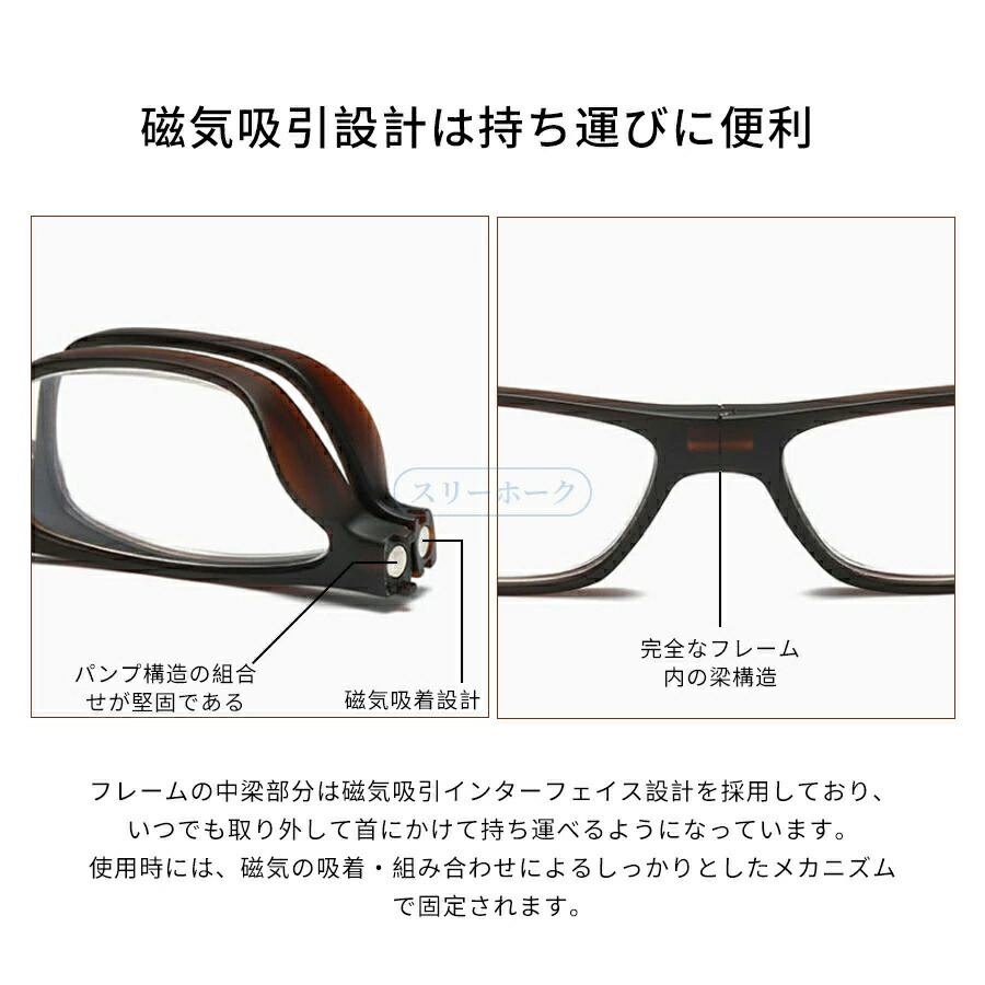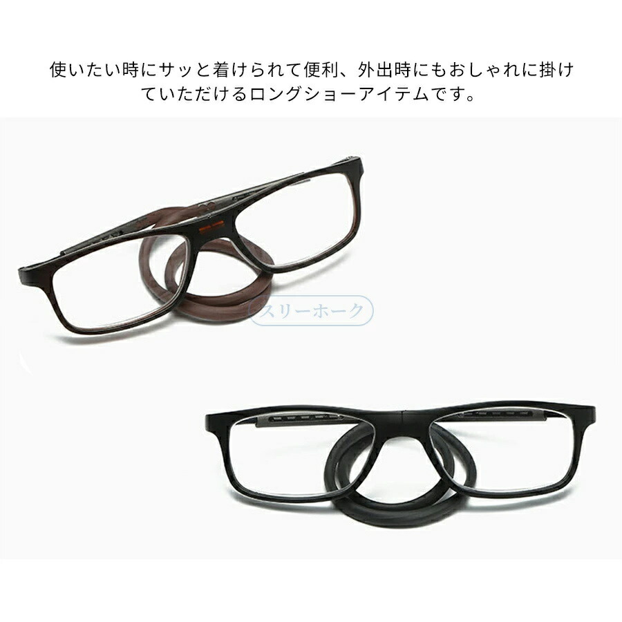 紛失防止老眼鏡 強力マグ スマート 首 バッグ 小物 ブランド雑貨 人気 ダークブラウン レッド ブルー ネイビー掛け ブラック +1.00 +1.50 +2.00 +2.50 +3.00 +3.50 +4.00