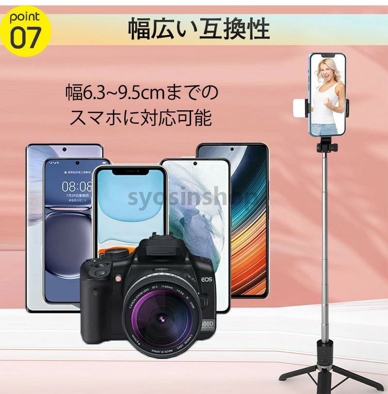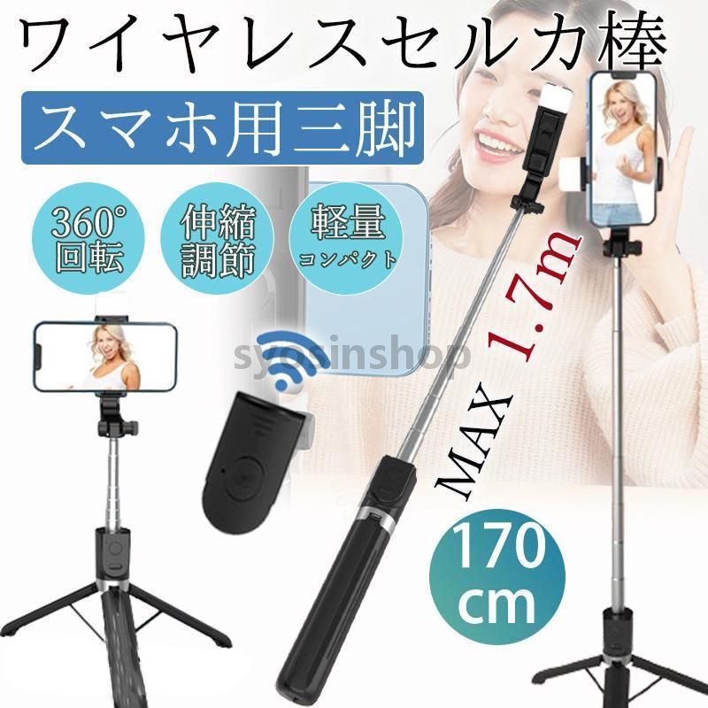 自撮り棒 カ棒 iphone スマホ 三脚 170cm スマホ用 三脚付き スマホスタンド 撮影スタンド android軽量 旅行 コンパクト