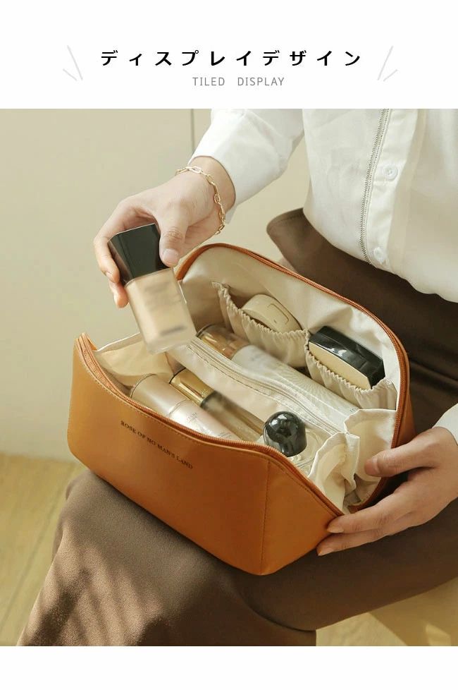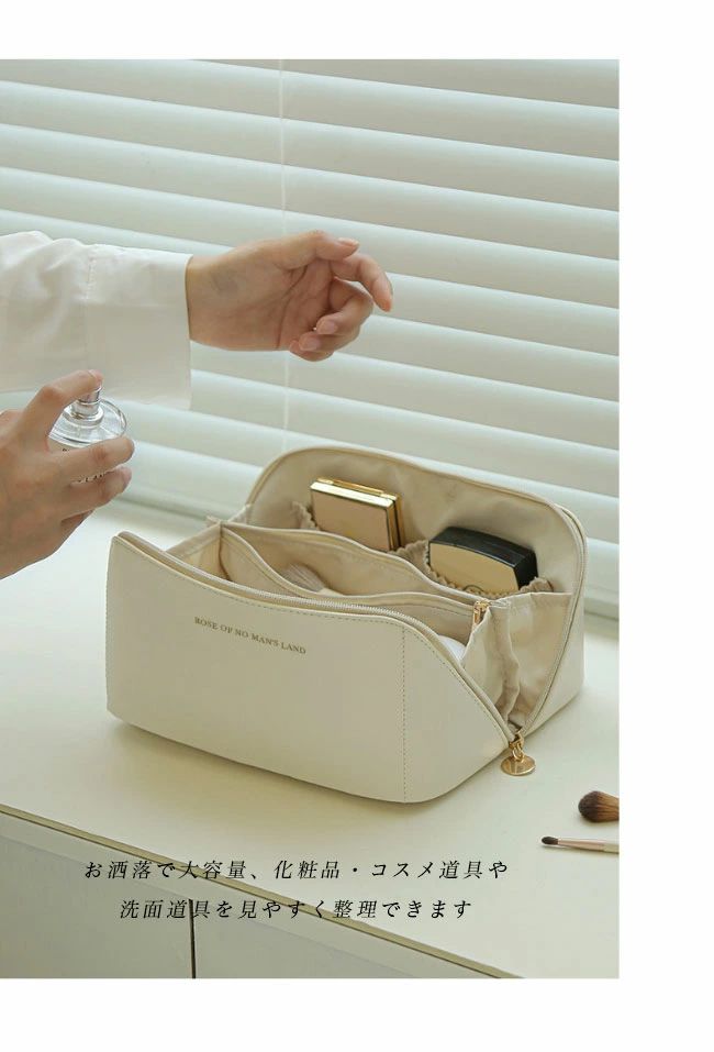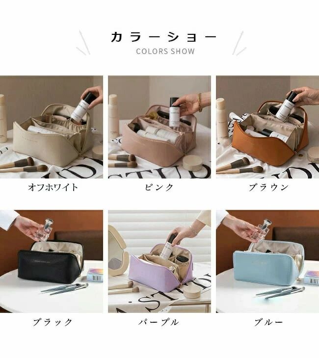 化粧ポーチ 大容量 機能的 ポーチ 自 バッグ 小物 ブランド雑貨 新登場! オフホワイト ピンク ブラウン ブラック パープル ブルー