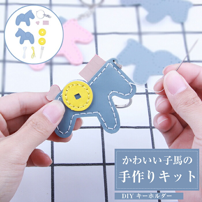 キット 未完成品 馬 ウマ キーホルダー かわいい 革 レザー リュック バッグ 飾り チャーム シンプル ペア プレゼント ストラップ カラー うま ギフト プレゼント