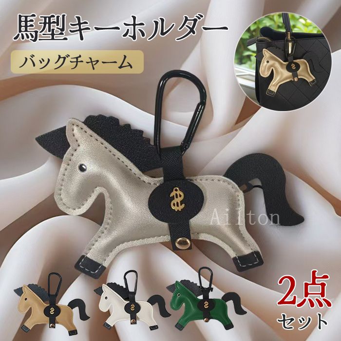 可愛さ満点!革製の馬型キーホルダー バッグチャームとしても、キーチェーンとしても使用可能 持ち運びにも便利でおしゃれ感抜群!