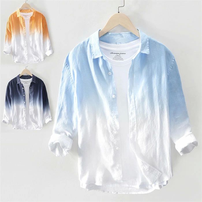 シャツ メンズ リネンシャツ グラデーション 春 秋 オシャレ カ