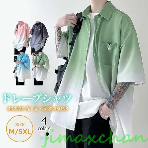 新生活 生活応援 グラデーション シャツ ブラウス ボタンダウン メンズ レディース ドレープシャツ ワイド ビッグサイズ ストレッチ 軽量 無地 韓国風 上品 通気