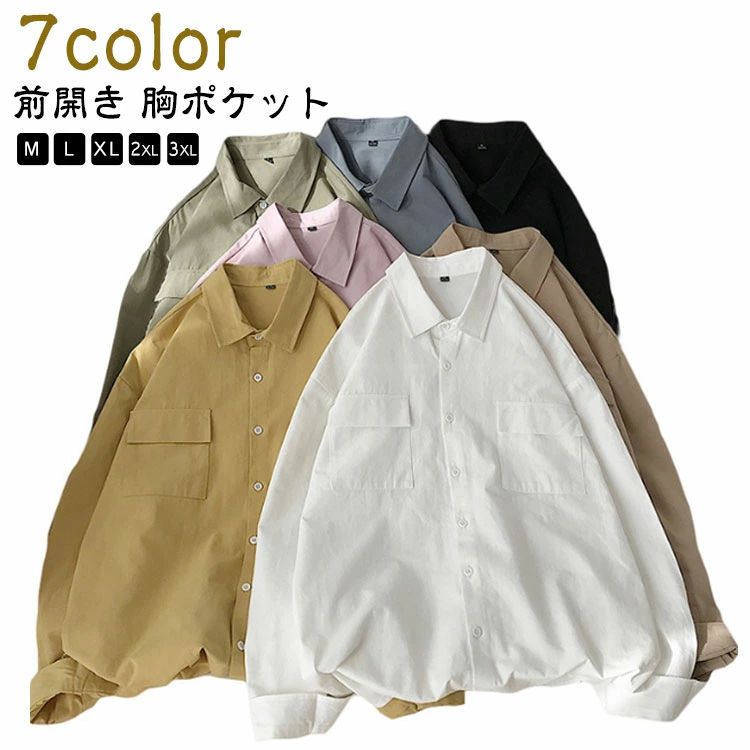 お 胸ポケット ファッション シャツ 無地 カジュアルシャツ シンプル 男性用 ワークシャツ 長袖 大きいサイズ