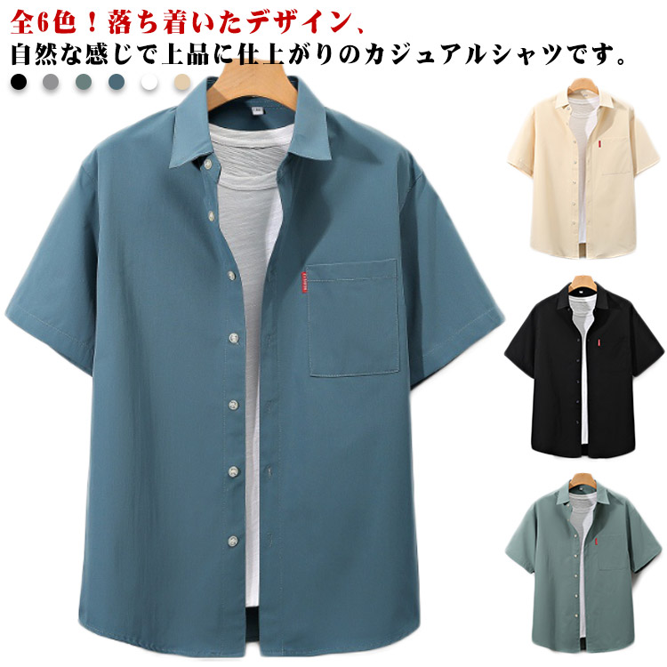 送料無料 半袖 シャツ メンズ おしゃれ 胸ポケット 半袖シャツ カジュアル 大きいサイズ 襟付き 開襟シャツ 無地シャツ 春夏 羽織り 通勤 お兄系