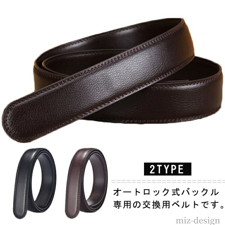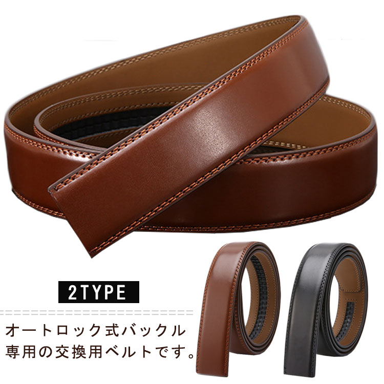 ベルト 交換用 帯のみ メンズ PUレザー 替えベルト オートロック式 男性用 105cm 110cm 115cm 120cm 125cm 紳士 穴無し 大きいサイズ スーツ カジュアル 紳 ビジネス