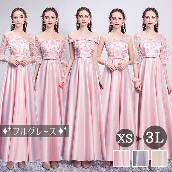 7色お揃い XS-3XL パーティードレス レディース 大きいサイズ ワンピース オールシーズン ロング丈 半袖 大人 結婚式 二次会 演奏会 謝恩会 成人式 同窓会 レース お呼ばれ 体型カ ドレス