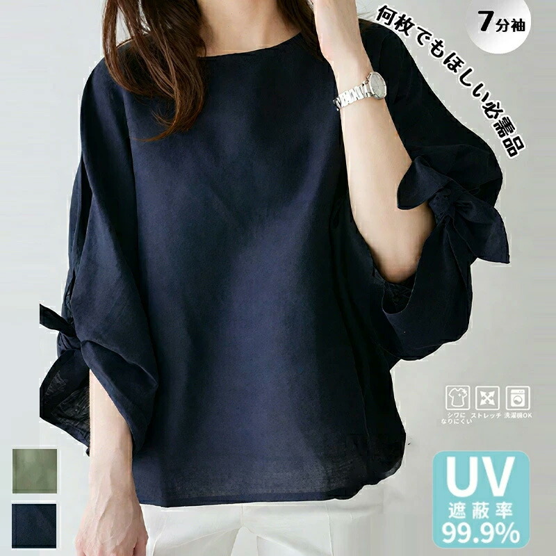 七分袖トップス レディース クルーネックトップス レディーストップス UVカット 接触冷感 簡単 30代 40代 50代 春 夏 人気 カジュアル服 ゆったり きれいめ 春服 新生活応援 S M 夏服