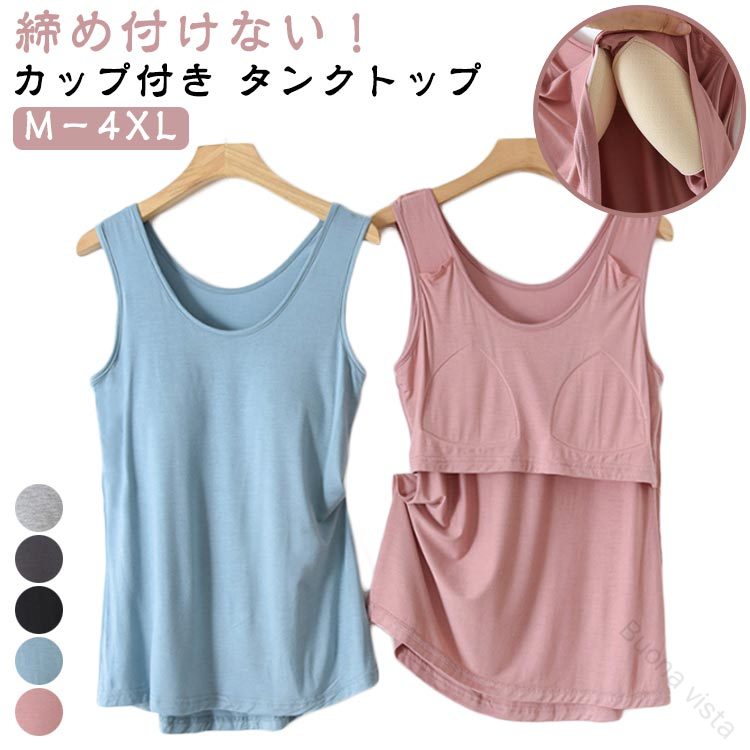 締め付けないカップ付きタンクトップアンダーゴムなしレディースインナーゆったりルームウェア部屋着ゴム無しブラ付きトップスブラトップ無地パッド付き大きいサイズサラサラ吸湿ストレッチ学生下着オールシーズン対