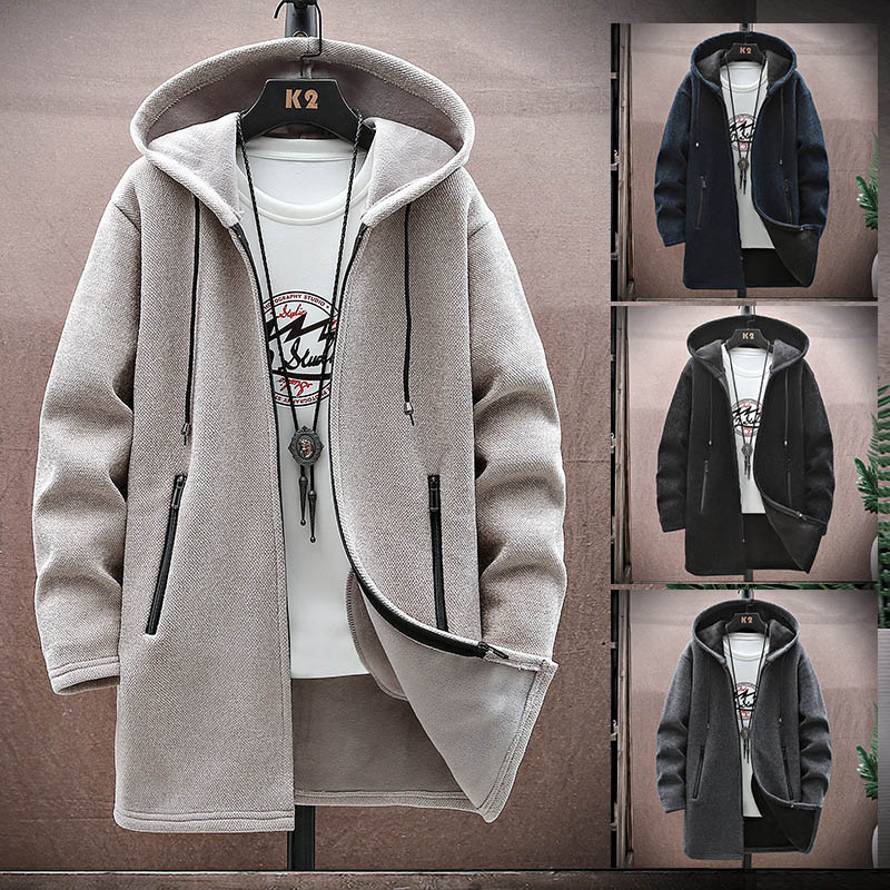 メンズ 秋服 冬服 ベンチコート ロングパーカー ジップアップ フード付き セーター 大きい ゆったり 裏起毛 厚手 サイズ